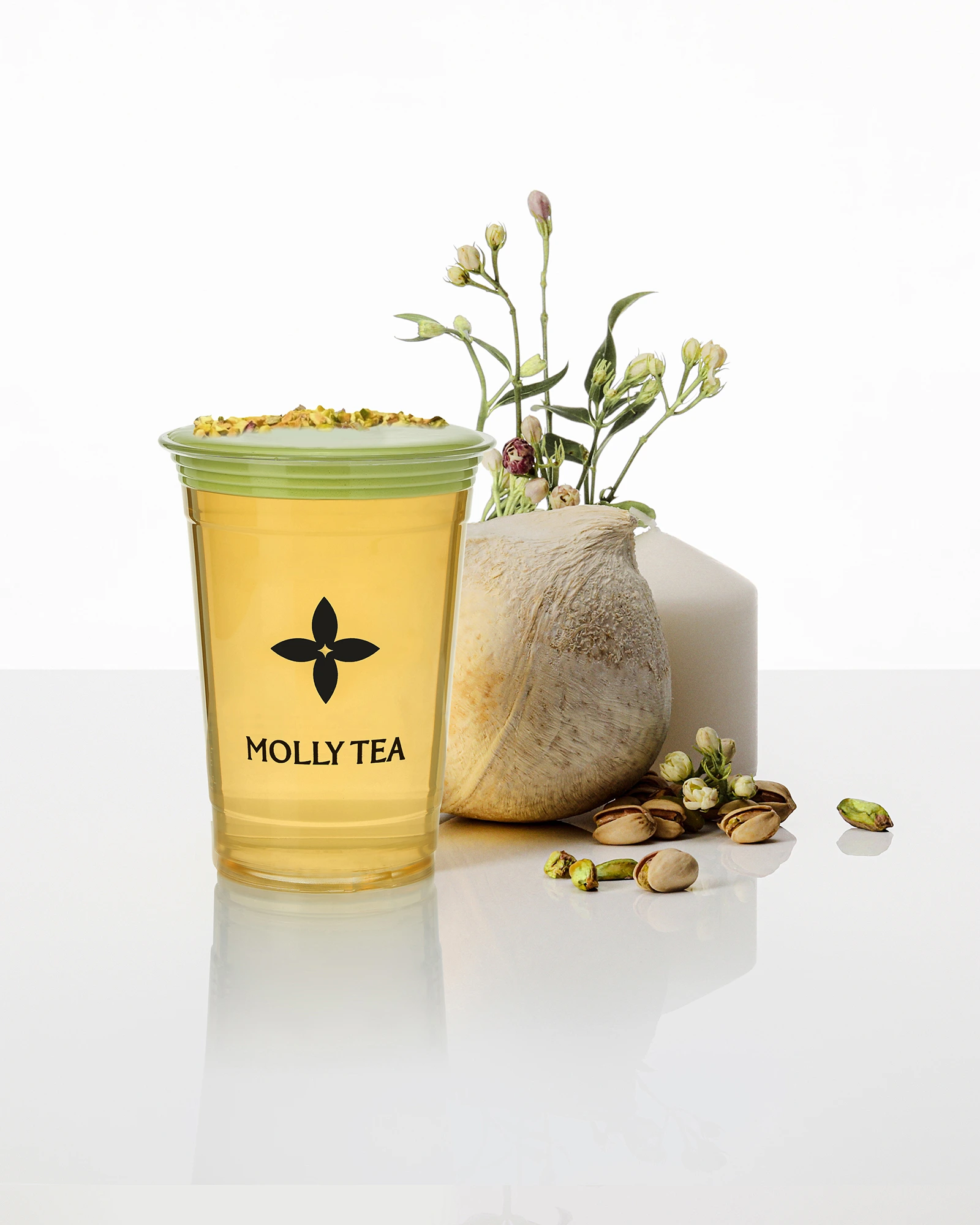 這款高級茉莉花茶融合了椰子水和開心果乳酪,散發出甜美的椰香、清新的花香和淡淡的茶香。起司帶來濃鬱的果香,口感順滑醇厚,餘韻悠長。
