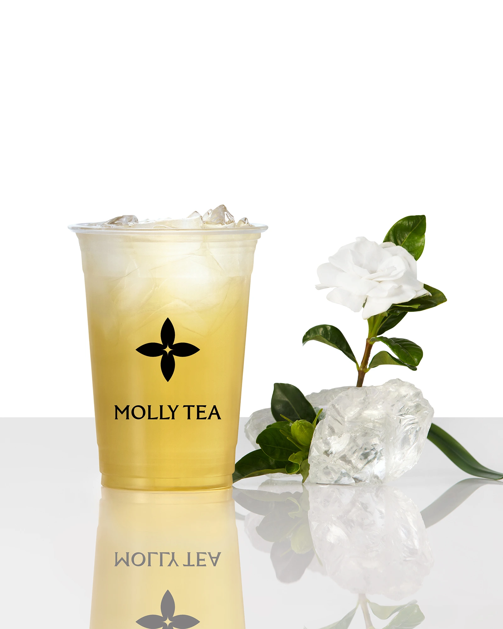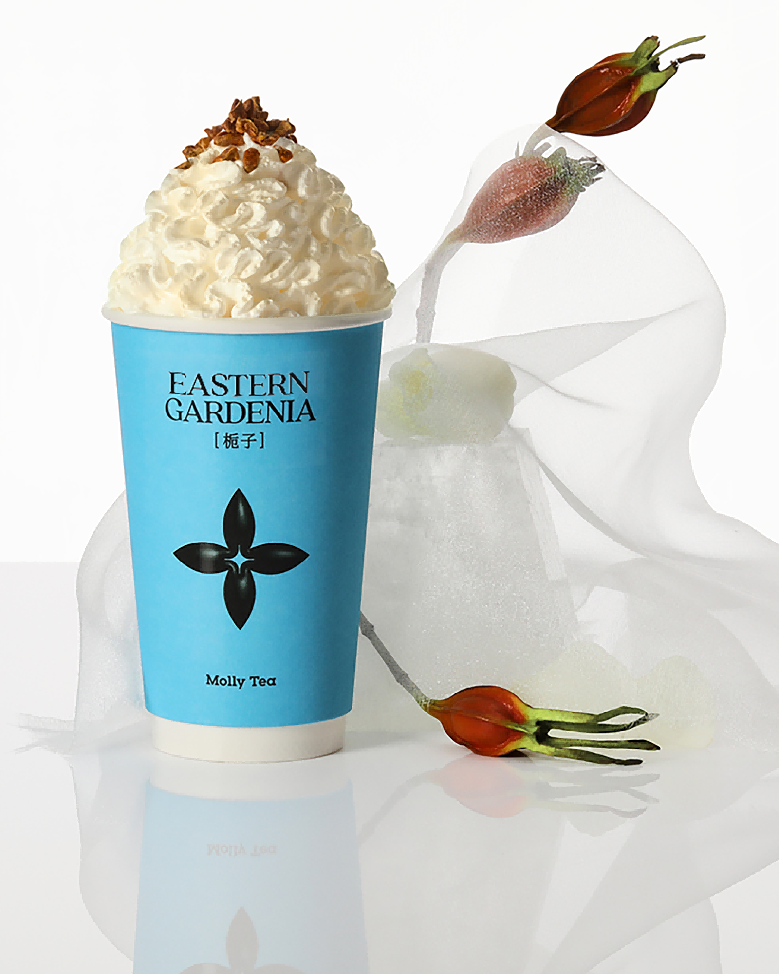 升級版梔子花奶茶,搭配招牌茉莉花奶油頂-兩種花香完美融合。新鮮牛奶襯托出梔子花的柔和香氣,每一口都帶來花香與奶香的微妙平衡。頂部撒上香脆的碎山核桃,帶來豐富層次的口感。