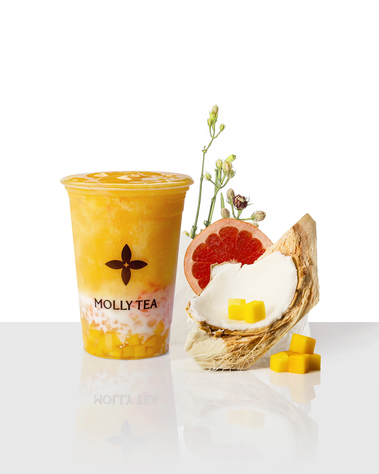 茉莉花香茶融入清涼爽滑的芒果冰沙中,混合新鮮香甜的芒果和多汁的西柚,再加入柔滑的椰奶。滿滿的果肉,每一口都帶來天然的果香口感。